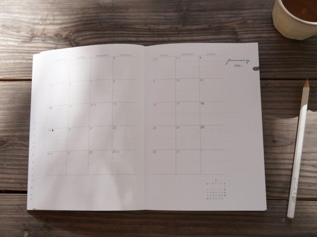 より広がりを持たせスペースも豊富に!予定だけでなく毎月の自分のテーマが自由に書き込みしやすい。